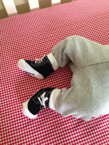 | OMG! So cute! These are 3-6 months clothes, btw. Wow...what a bruiser! |